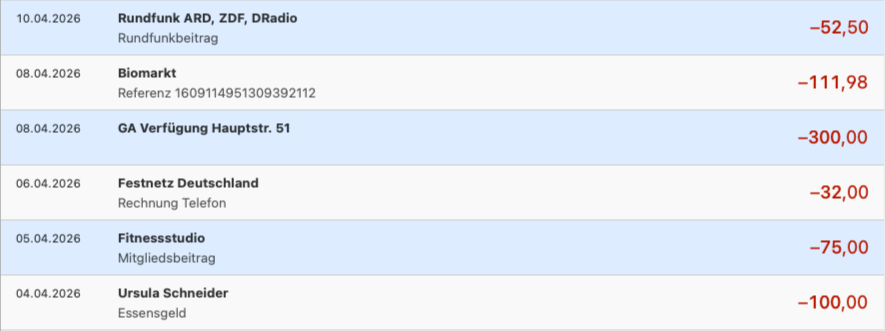 Klicken Sie Umsätze einzeln an, während Sie die «Command-Taste» gedrückt halten. Ein erneuter Klick auf einen ausgewählten Umsatz entfernt die Auswahl wieder. Beide Methoden können kombiniert werden.